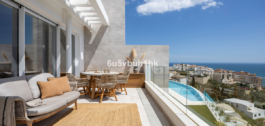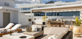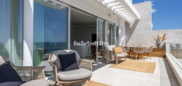 Als je binnenkomt, word je verwelkomd door een open uitzicht dat door de keuken, eetkamer en woonkamer stroomt en zich naadloos uitstrekt naar het verbazingwekkende terras met uitzicht op zee, versterkt met 9-meter elektrische zonneschermen van hoge kwaliteit met windsensoren.