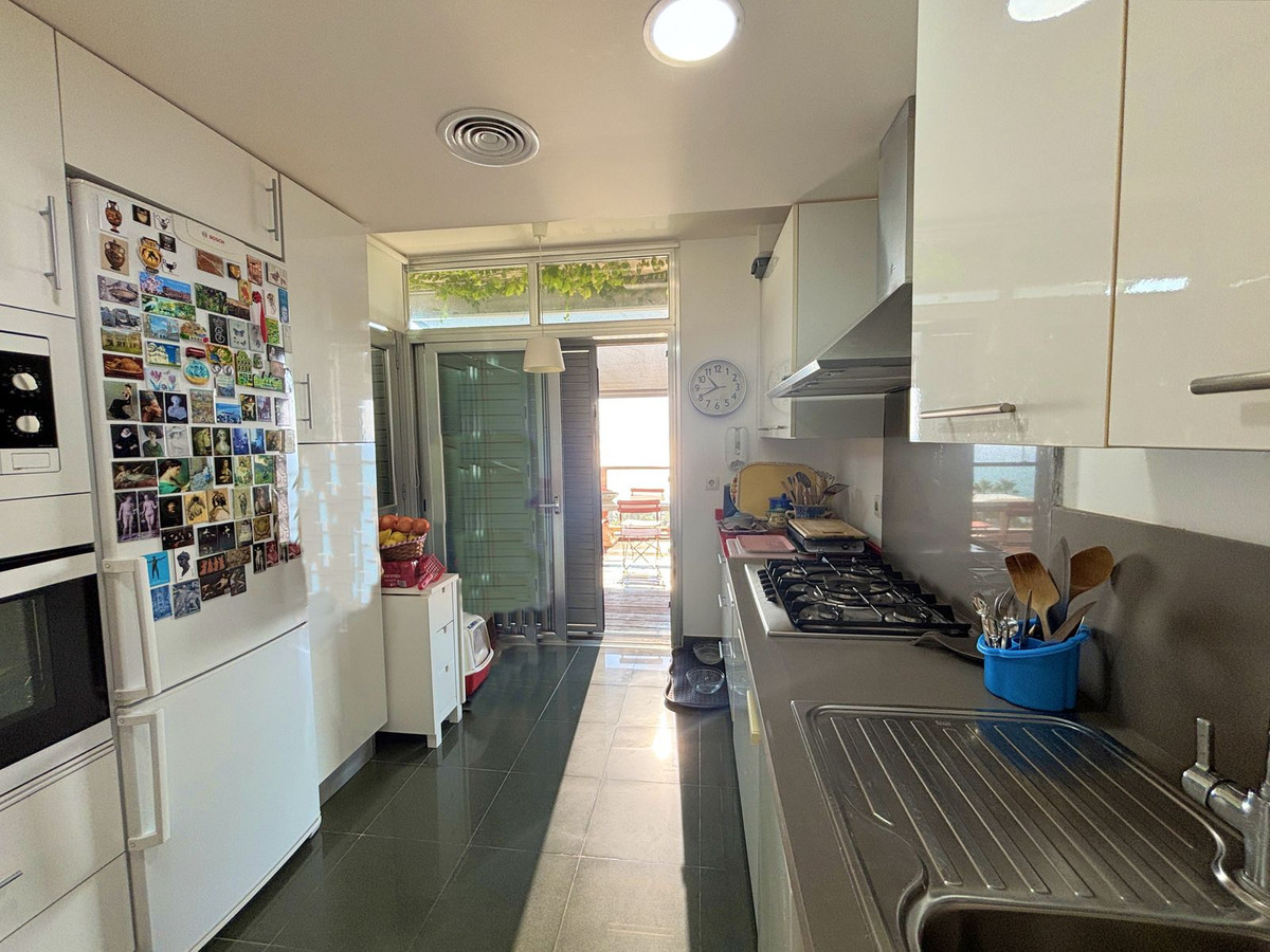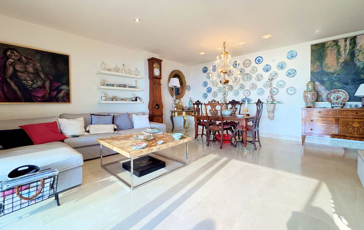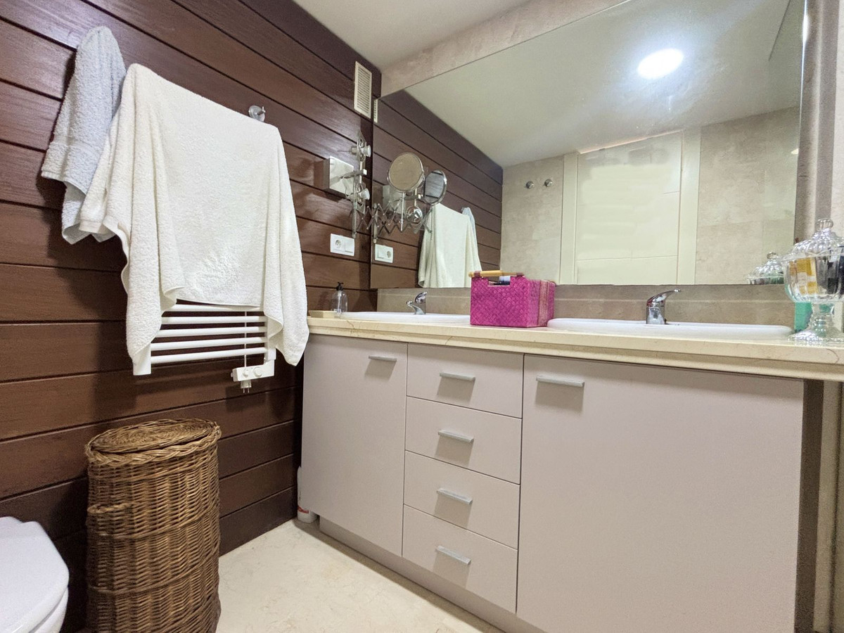 PENTHOUSE MET SPECTACIAAL PANORAMISCH ZEEZICHT IN EEN PRIVE-GESLOTEN GEMEENSCHAP TUSSEN SOTOGRANDE EN PUERTO DE LA DUQUESA.Bevoorrechte locatie in een prachtige privé urbanisatie met 24-uurs beveiliging, omgeven door rust, veiligheid en op slechts 5 minuten van Puerto de la Duquesa en alle essentiële voorzieningen. Gelegen in een zorgvuldig onderhouden gemeenschap met uitgebreide gemeenschappelijke ruimtes, waaronder een buitenzwembad, een verwarmd binnenzwembad en een sociale ruimte voor evenementen en bijeenkomsten. Deze verfijnde woning, gebouwd met een uitstekende kwaliteit afwerking, beschikt over drie ruime slaapkamers en drie badkamers, waarvan een en suite, een aparte keuken met wasruimte, en een elegante woonkamer die uitkomt op een spectaculair terras van 32 m² met adembenemend panoramisch uitzicht op zee – perfect om het hele jaar door te genieten van het mediterrane klimaat. Met zijn uitstekende oriëntatie is het appartement licht en uitnodigend, waardoor het ideaal is als permanente verblijfplaats en als hoogrenderende investering. Dubbele beglazing, rolluiken, een eigen parkeerplaats en een berging zijn allemaal bij de prijs inbegrepen. Een onweerstaanbaar penthouse dat comfort, stijl en een onovertroffen locatie perfect combineert.