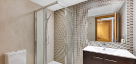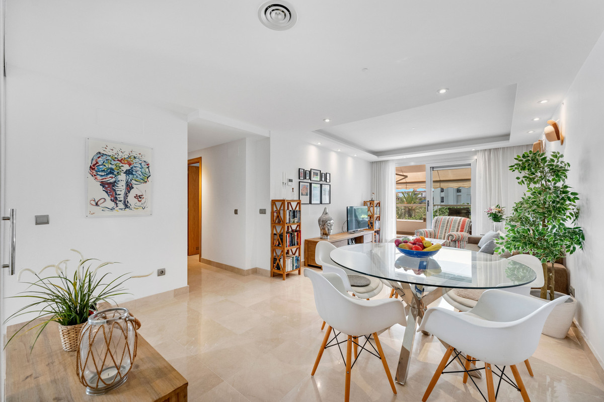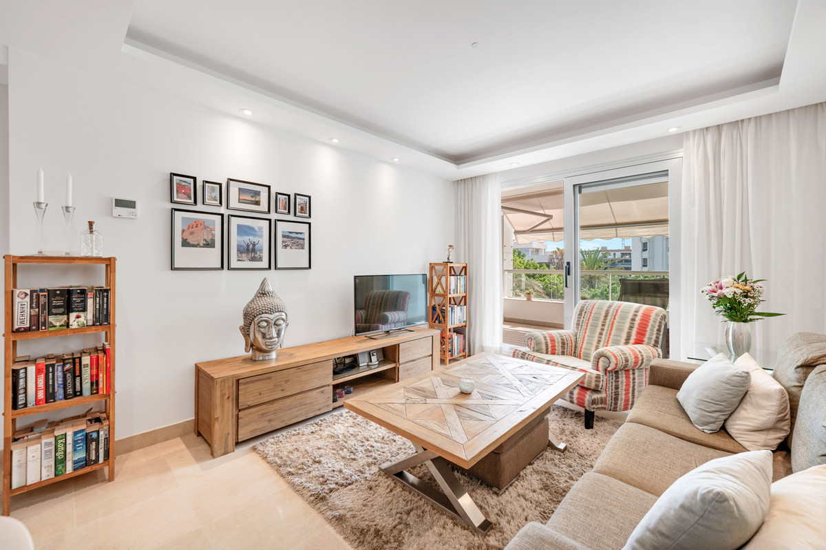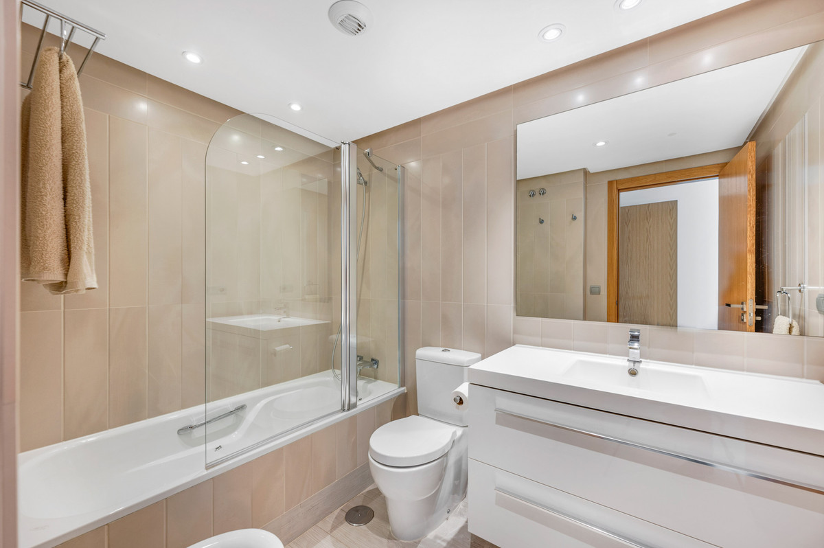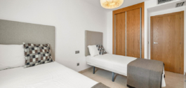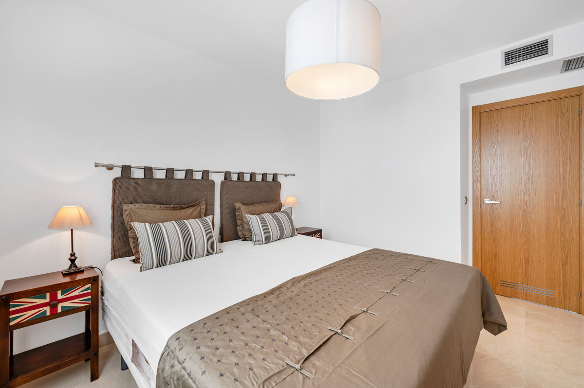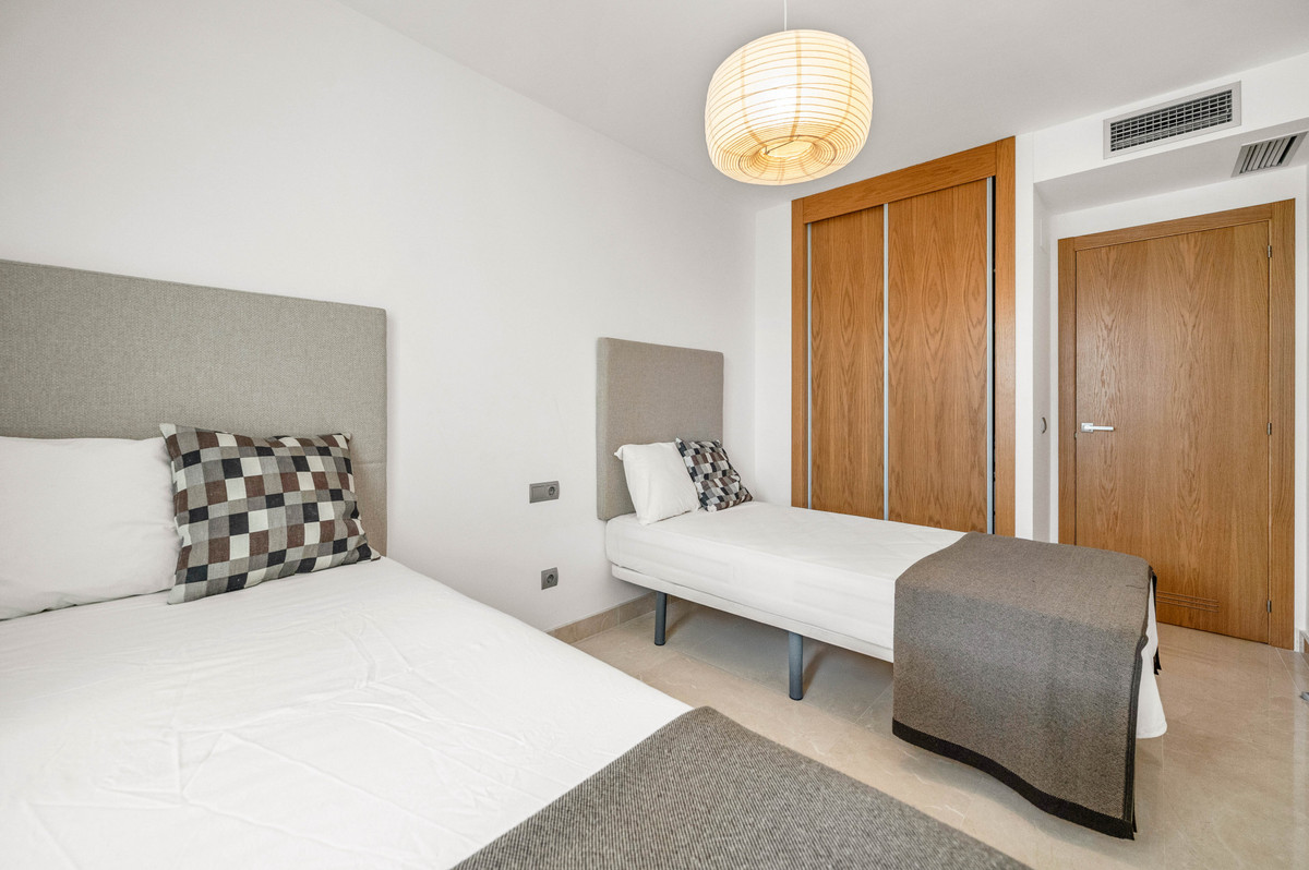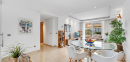 Het appartement heeft een goed ontworpen indeling met een ruime slaapkamer met eigen badkamer en twee extra slaapkamers die een moderne badkamer delen. De woon- en eetruimte is licht en uitnodigend en leidt naar privéterrassen die de binnen-buitenleefervaring uitbreiden.