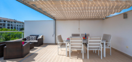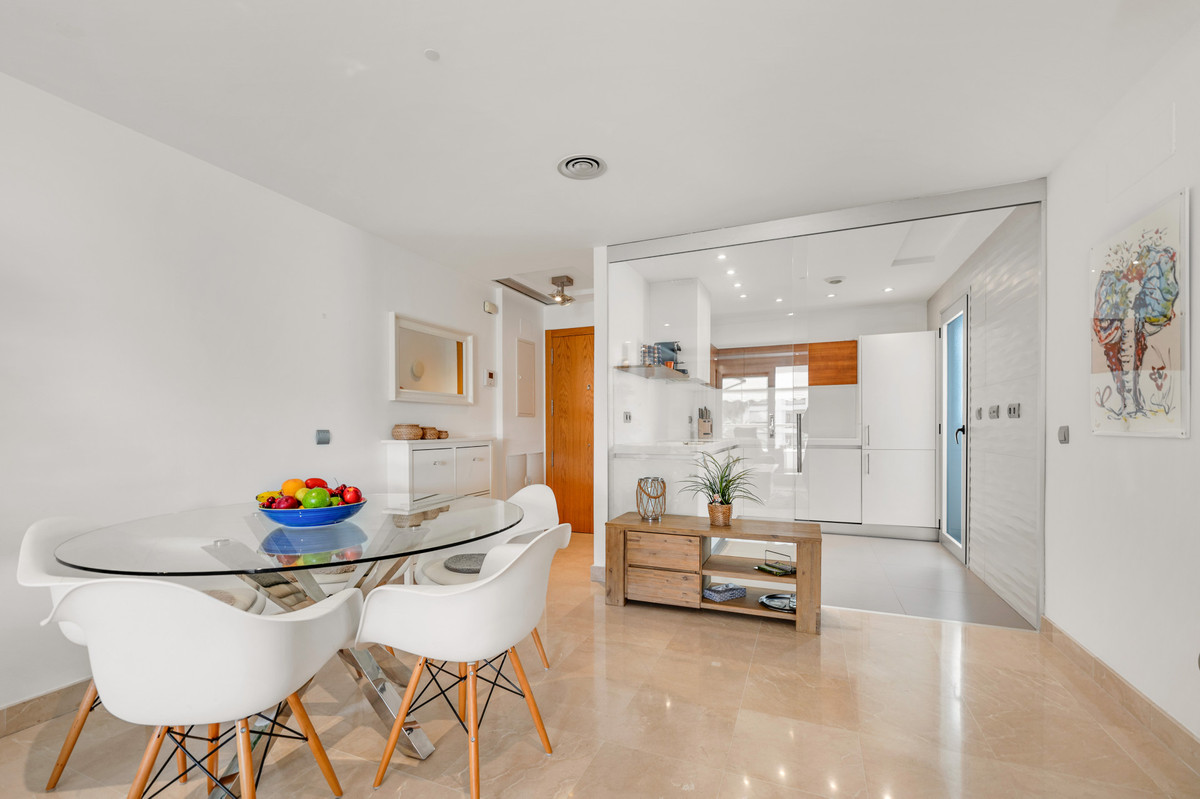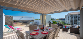 Een echt hoogtepunt van dit penthouse is het fantastische privésolarium of dakterras, volledig uitgerust met een buitenkeuken, eethoek en douche, perfect om buiten te eten, te zonnebaden of vrienden en familie te ontvangen onder de mediterrane hemel.