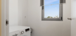 Het penthouse is gebouwd in 2021 en heeft een eigentijds ontwerp en een doordachte indeling. De hal leidt naar een lichte woon- en eetkamer, naadloos verbonden met een volledig ingerichte open keuken met hoogwaardige apparatuur en een aparte wasruimte voor extra gemak.