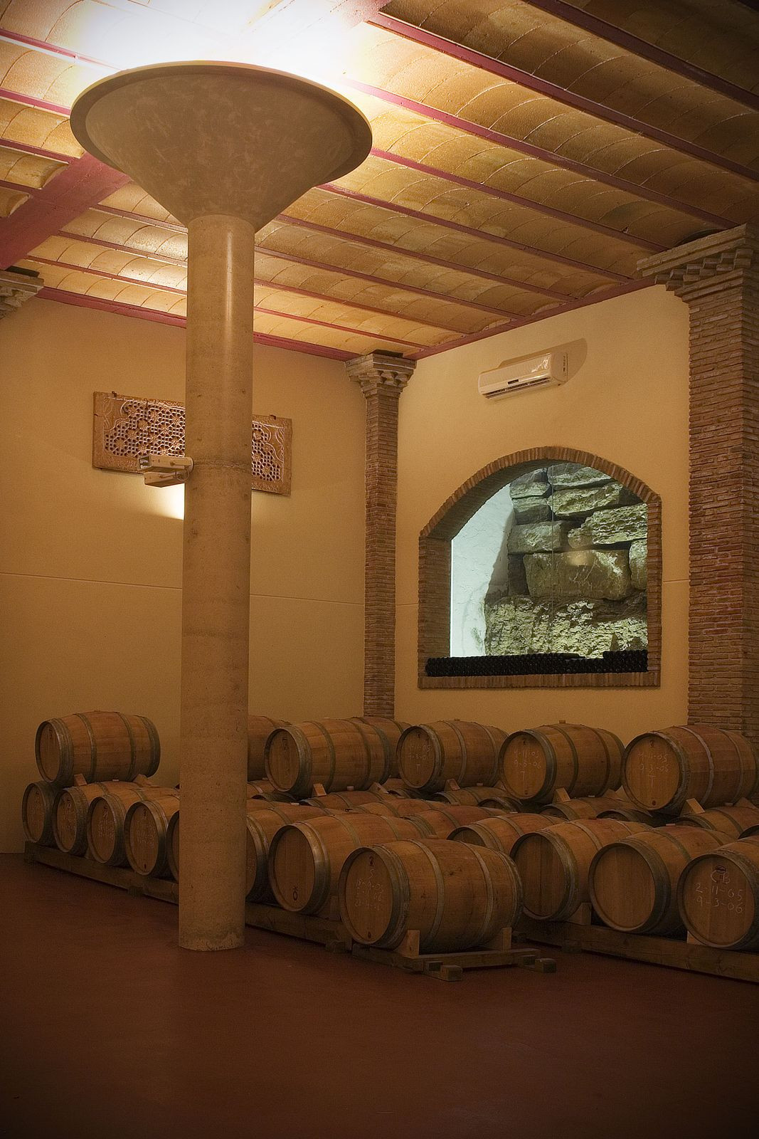 – Aan een kant van het gebouw bevindt zich de ingang naar de wijnkelder, het museum en het proeflokaal.