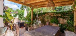 Het huis wordt omringd door meerdere buitenruimtes, elk met hun eigen charme, van een eetpatio en loungehoek tot een barbecuehoek en handige opslagruimtes. Zonnepanelen voegen een milieuvriendelijk tintje toe en zorgen voor energie-efficiëntie en kostenbesparingen.