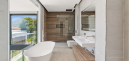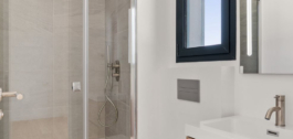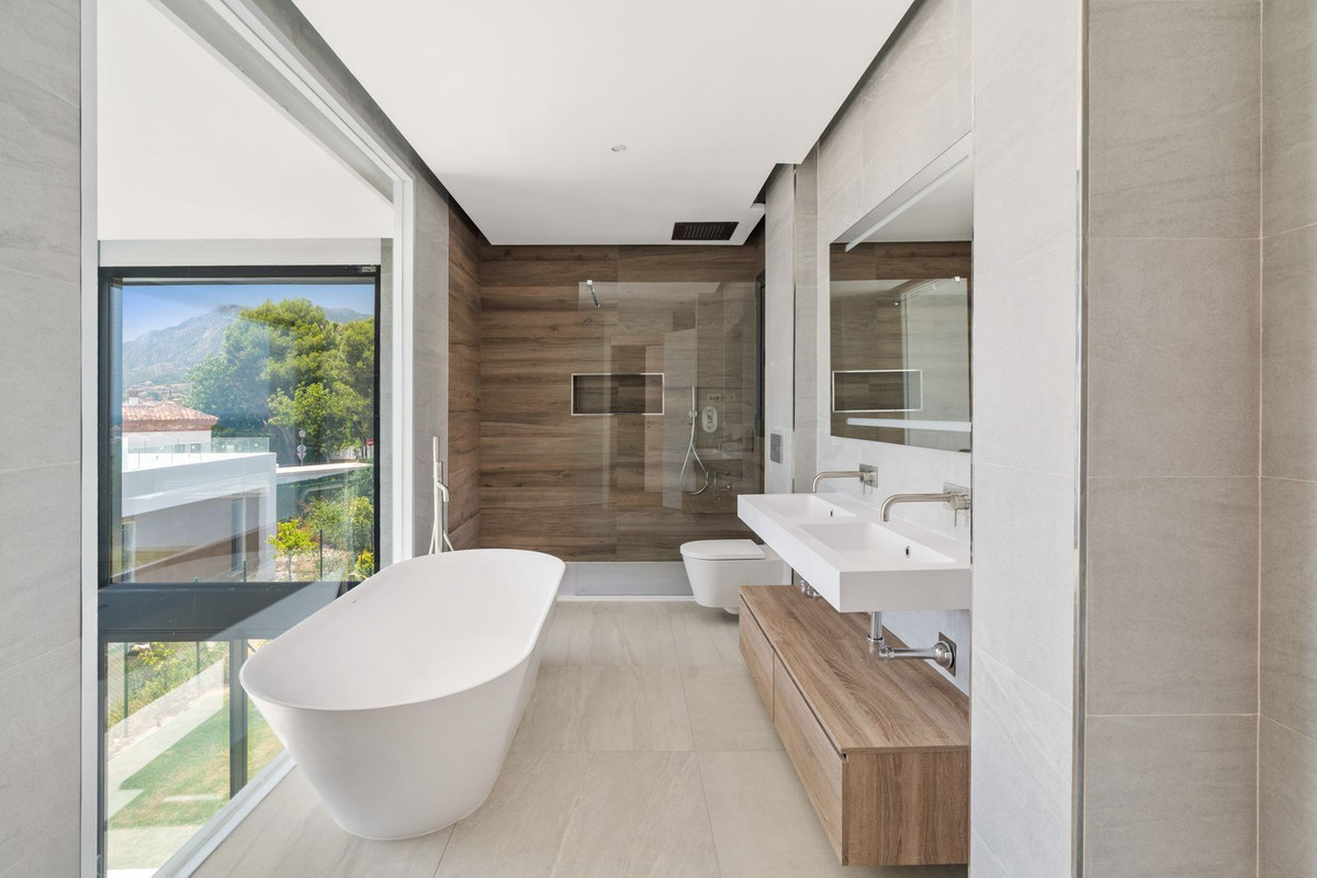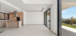 Op de bovenverdieping biedt de master suite panoramisch uitzicht op zee en de bergen, een royale badkamer en een elegante inloopkast. Twee extra gastenslaapkamers, elk met een eigen badkamer, bieden privacy en comfort voor zowel familie als bezoekers.