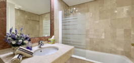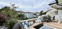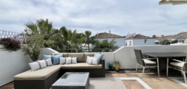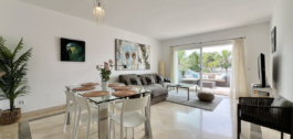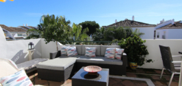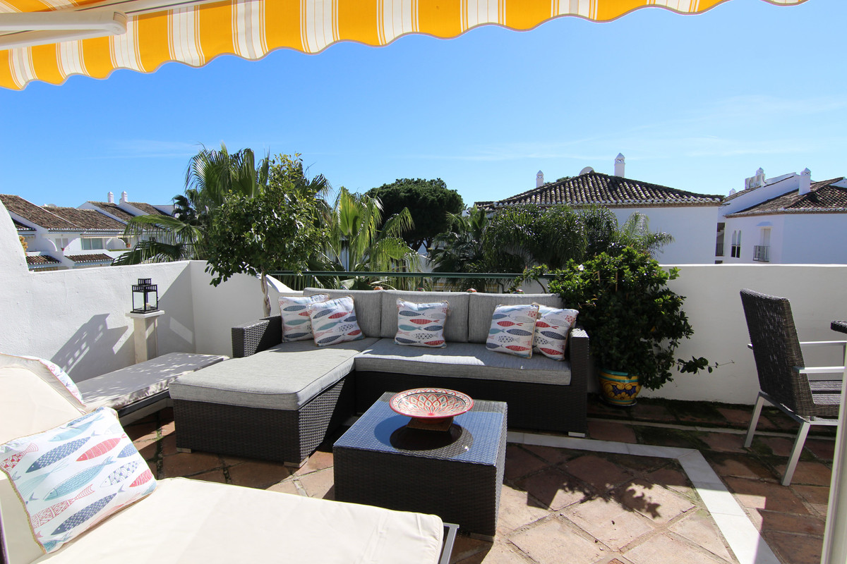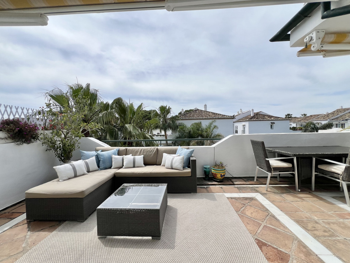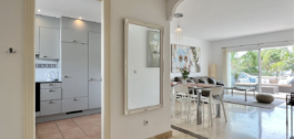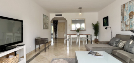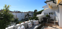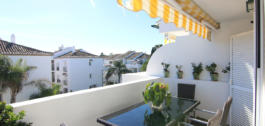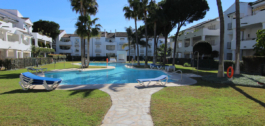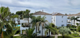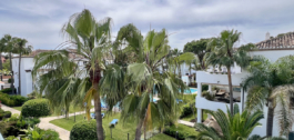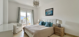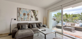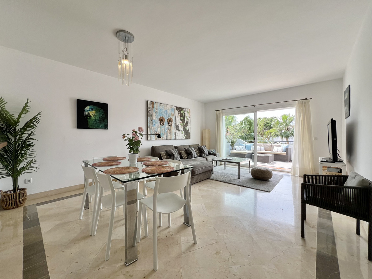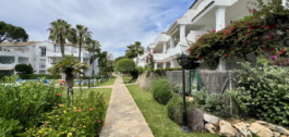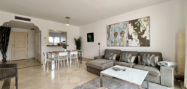 Fantastisch appartement op de bovenste verdieping, op het zuiden, in El Presidente. De prachtige entree, vol met aromatische planten, verwelkomt ons, en zodra we de hal binnenkomen, waarderen we hoe het hele appartement baadt in het zonlicht. De ruime woon- en eetkamer, met grote glazen schuifdeuren, komt uit op het zeer zonnige terras. De hoofdslaapkamer heeft ook direct toegang tot hetzelfde terras en beschikt over een en-suite badkamer. De tweede slaapkamer kijkt uit op een charmant dennenbos. De tweede badkamer dient ook als gastentoilet. De keuken is volledig uitgerust. El Presidente biedt een grote parkeerplaats, vijf zwembaden, waarvan er een het hele jaar door verwarmd is, prachtige volgroeide gemeenschappelijke tuinen met fonteinen, tennis- en paddlebanen en 24-uurs beveiliging. Voorzieningen, supermarkten en restaurants liggen op loopafstand, evenals het strand, het nieuwe kustpad van Estepona en uitstekende restaurants zoals Salduna, op slechts 250 meter van het complex. Mis de kans niet om deze geweldige kans te bezoeken!
