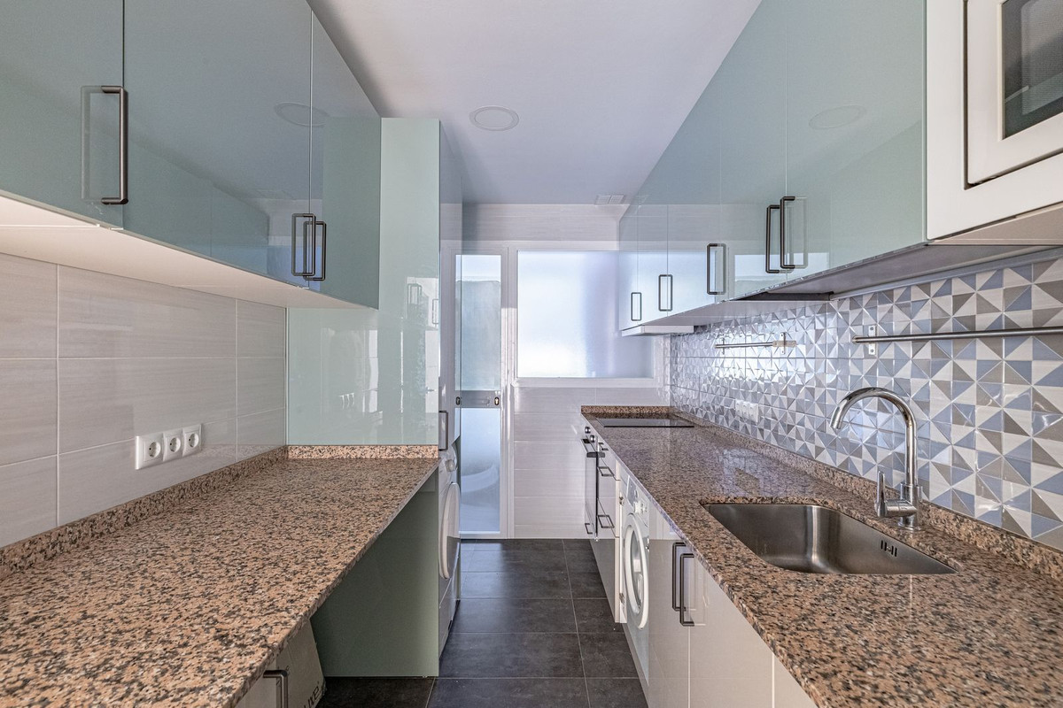 Onberispelijk appartement op de bovenste verdieping in het hart van Marbella, op slechts 5 minuten lopen van het strand en de promenade, en naast supermarkten en winkels. De woning is zeer recentelijk gerenoveerd en beschikt over: een woon/eetkamer met toegang tot het terras met prachtig zeezicht, een hoofdslaapkamer met en-suite badkamer, nog twee slaapkamers met elk een eigen badkamer, een volledig uitgeruste keuken en een wasruimte. Het complex heeft een zwembad en tuin, en een beveiligde gemeenschappelijke parkeerplaats.