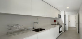 Het appartement heeft een lichte open woon-eetkamer, de keuken is volledig uitgerust met inbouwapparatuur.