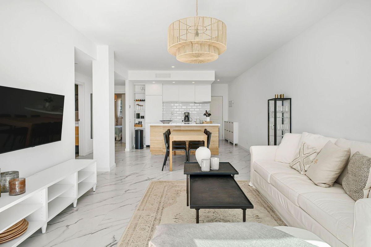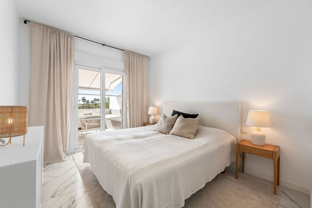 Een zeldzame kans om een gerenoveerd appartement op de bovenste verdieping te kopen in het populaire gesloten complex La Rinconada in de Golf Valley, Nueva Andalucia, op loopafstand van restaurants, winkels, bars, cafés, sportfaciliteiten en op slechts een paar minuten rijden van de beste golfbanen die het gebied te bieden heeft. De woning is op het zuiden georiënteerd, waardoor je uitzicht hebt op de goed onderhouden tuin en het zwembad. Het appartement is licht en ruim, met een open moderne keuken, woon-/eetkamer die uitkomt op het ruime privéterras met extra zithoek, drie slaapkamers, waarvan een ensuite, en twee gastenslaapkamers die een badkamer delen. Het appartement beschikt verder over overdekte parkeergelegenheid en U/F-verwarming in de badkamers.