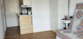 De woning heeft een geschatte grootte van 20 m² en is in goede staat. Het biedt een grote leefruimte met een geïntegreerde keuken, een complete badkamer en een terras met aangenaam uitzicht over de groene omgeving.