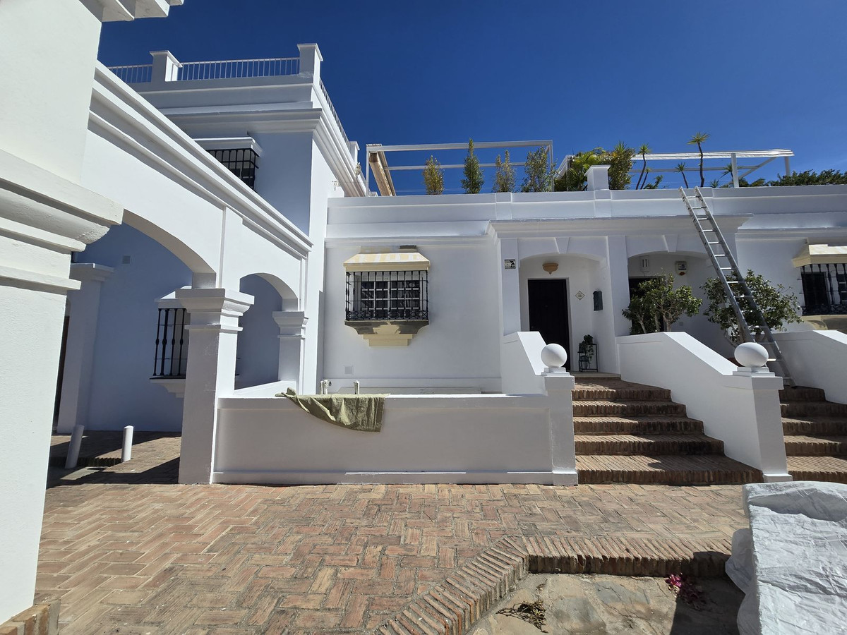 Binnen beschikt de woning over een onlangs gerenoveerde keuken die overloopt in een lichte leefruimte en leidt naar een zonovergoten terras. Boven biedt een ruim dakterras een prachtig uitzicht op de La Concha berg en uitzicht op zee in de verte – perfect om te ontspannen, dineren of voor entertainment, met ruimte voor een zithoek, buitenkeuken en ligstoelen.