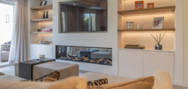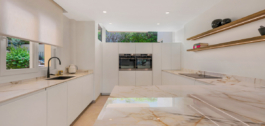 De woning strekt zich uit over drie verdiepingen en heeft een oppervlakte van 212 m² en beschikt over een lichte open woonkamer met op maat gemaakte keuken, topkwaliteit apparatuur, wijnkoelkast en open haard. Grote schuifdeuren leiden naar een privéterras met tuin, ideaal voor entertainment.