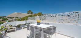 Dit volledig gerenoveerde herenhuis met 3 slaapkamers en 2,5 badkamer in La Quinta Hills combineert Scandinavisch design met mediterrane warmte, waardoor een geraffineerde en functionele woning is ontstaan in een van Benahavís meest gewilde gated communities.