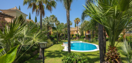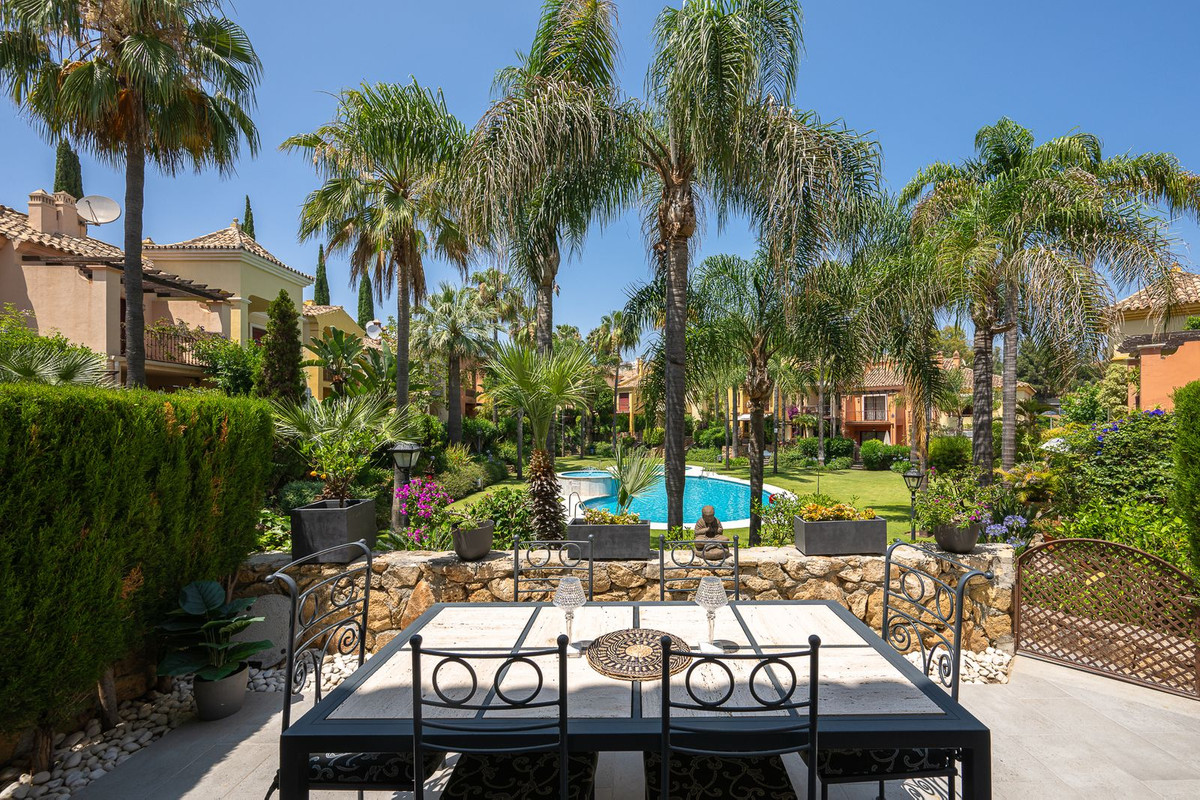 EXCLUSIEF! Ontdek deze prachtige halfvrijstaande woning gelegen in een exclusieve privé urbanisatie in Andalusische stijl, midden in het hart van de begeerde Golden Mile van Marbella. Een waar juweeltje dat traditionele charme combineert met moderne accenten, dankzij een zorgvuldig uitgevoerde gedeeltelijke renovatie.