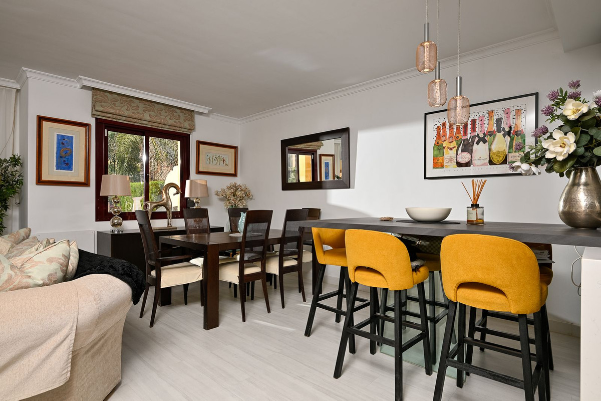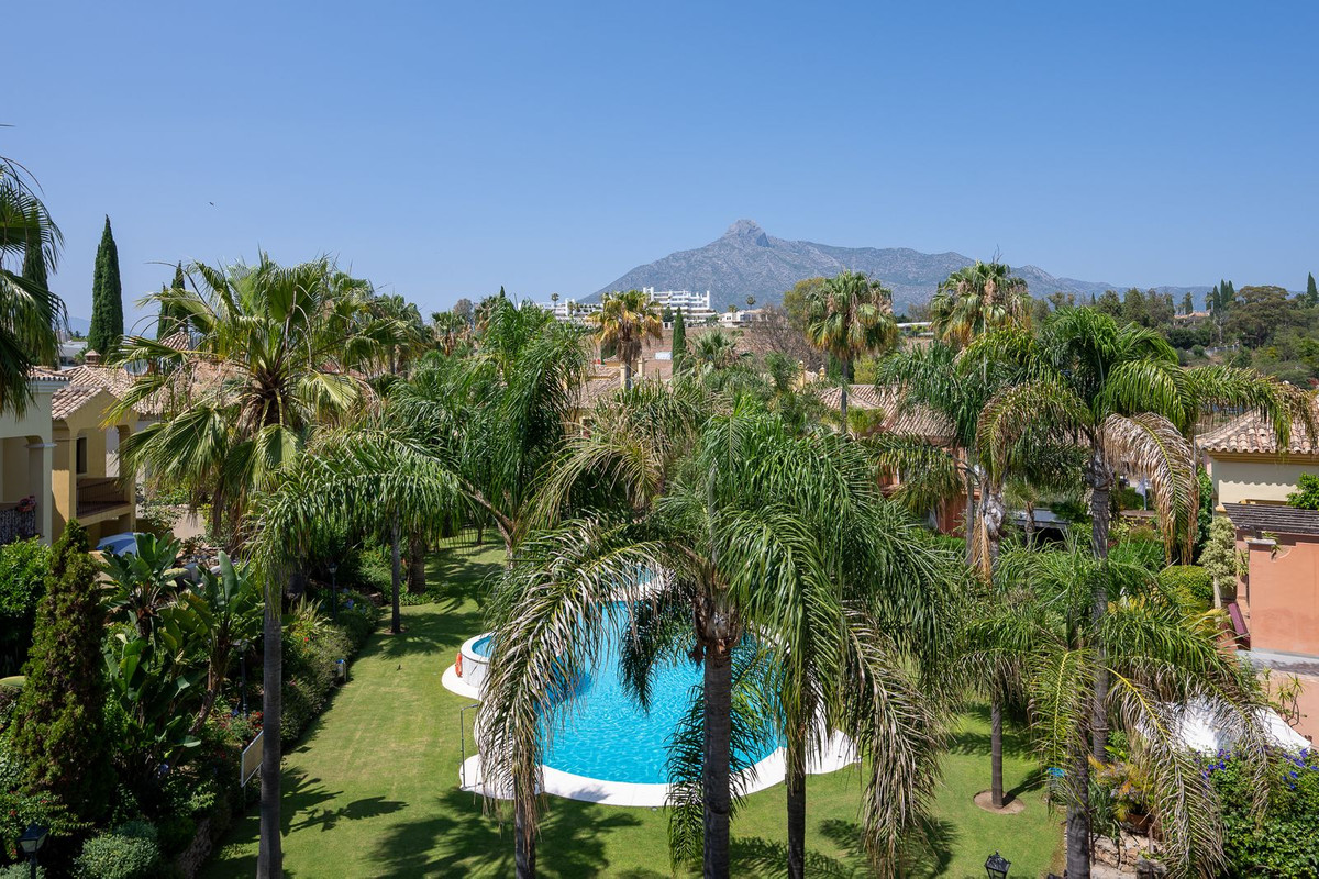 Deze woning ligt in een zeer rustig en veilig complex omgeven door groen, op slechts enkele minuten van het centrum van Marbella, Puerto Banús en de beste stranden van de Costa del Sol.