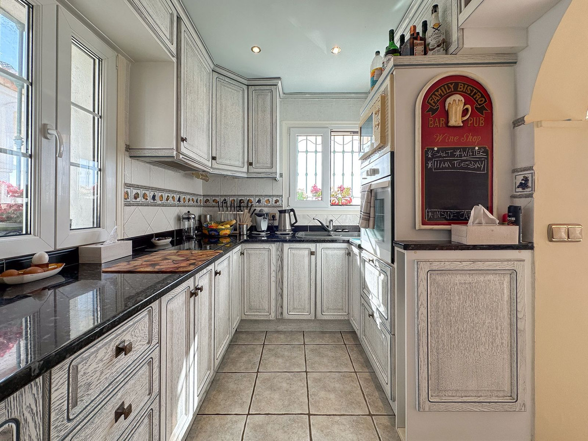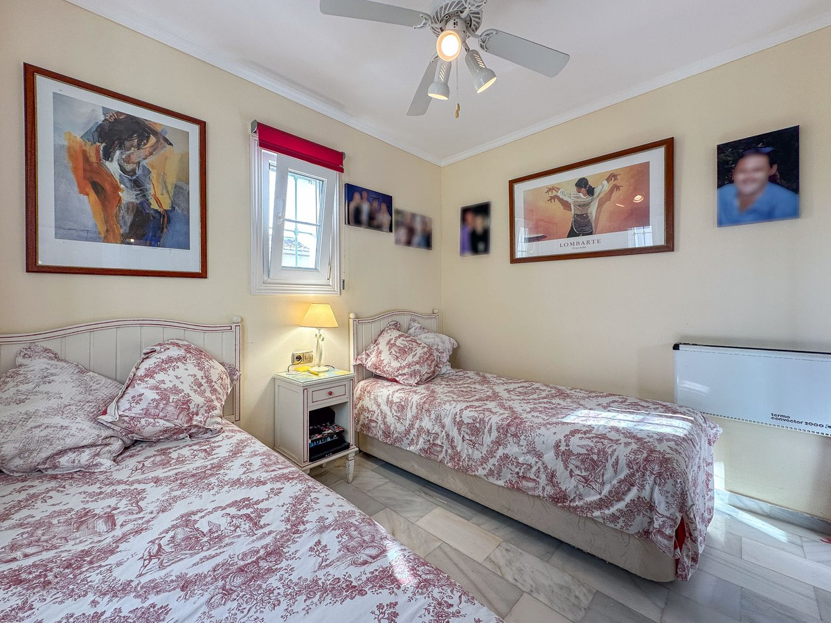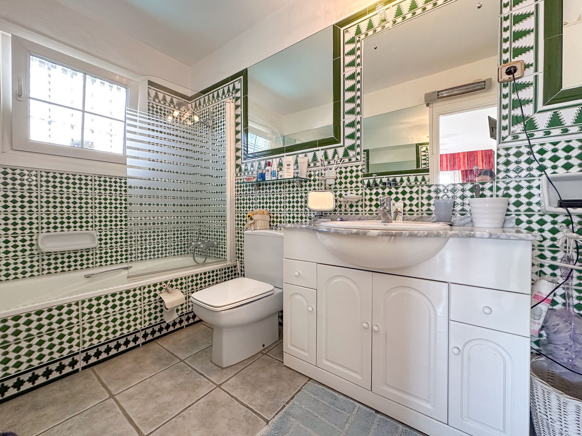 Bij binnenkomst wordt u verwelkomd door een elegante hal, op de begane grond zijn er drie slaapkamers, met inbouwkast en twee badkamers een van de slaapkamers, is de master bedroom ensuite en heeft eigen toegang tot het terras en het zwembad.