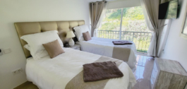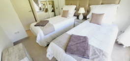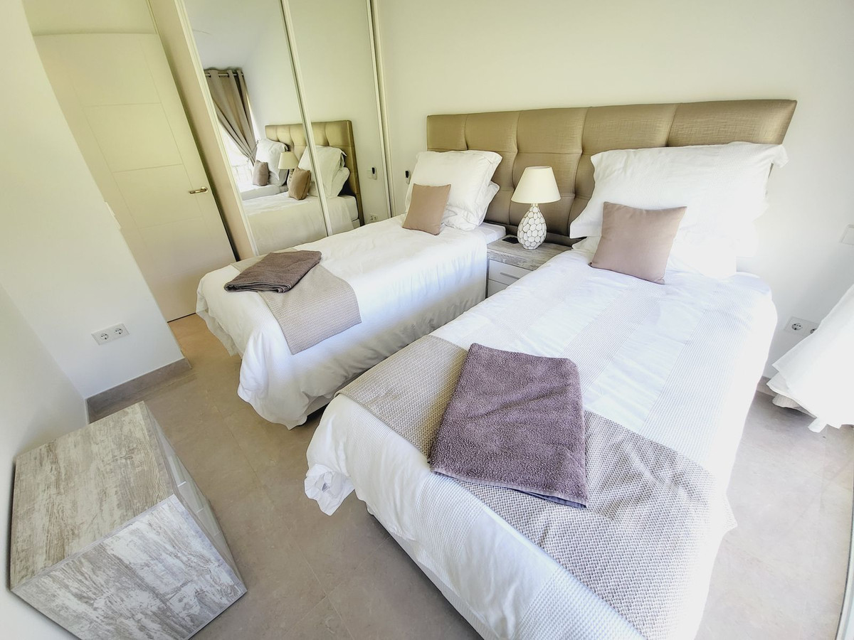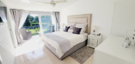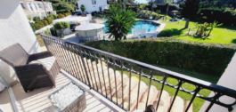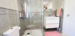 BESTAAT UIT: EIGEN ENTREE NAAR EEN ACHTERSTE EETKAMER TERRAS / PATIO MET INGEBOUWDE BERGING, TOEGANG VANAF DIT TERRAS NAAR DE KEUKEN EN DE HOOFDINGANG, OPEN KEUKEN DIE LEIDT NAAR EEN EETHOEK DIE DOORSTROOMT NAAR DE ROYALE WOONKAMER. VANUIT DE WOONKAMER HEEFT U TOEGANG TOT EEN GROOT ZONNIG TERRAS MET GLAZEN GORDIJNEN DIE UITKOMEN OP DE TUINEN DAARBUITEN. VANUIT DE WOONKAMER OPENT EEN INTERNE DEUR NAAR EEN GASTENTOILET EN GEEFT TOEGANG TOT DE TRAP NAAR DE SLAAPKAMER. De centrale trap geeft toegang tot twee ruime tweepersoons slaapkamers en een moderne gastendouche met overloop die ook leidt naar de grote hoofdslaapkamer met een eigen complete badkamer met aparte douche en bad, evenals een ruime inloop kleedkamer. EEN KLEIN TERRAS NAAST DE HOOFDSLAAPKAMER HEEFT UITZICHT OP HET PRACHTIGE GEMEENSCHAPPELIJKE ZWEMBAD EN TUINEN, EVENALS EEN AANTAL UITZICHT OP ZEE OVER DE PRACHTIGE DENNEN IN LAGERE MIRAFLORES.