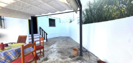 Gelijkvloerse woning. Het heeft 109 m² bebouwde oppervlakte en een buitenpatio van 100 m², met een garage.