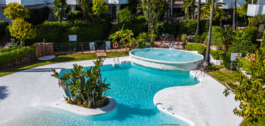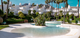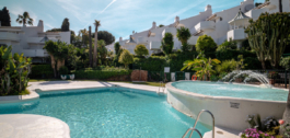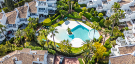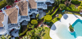Deze privéwijk staat bekend om zijn locatie, privacy en veiligheid. Het zwembad is ontworpen door een bekende architect, het terrein wordt omringd door lommerrijke natuurgebieden en het lijkt te worden beschermd door de adembenemende Sierra Blanca bergen.