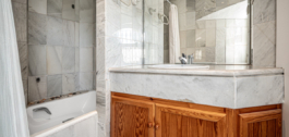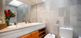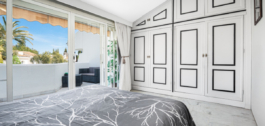Op de eerste verdieping biedt de master suite een doorloopkast die de ruimte deelt met de ensuite badkamer, prachtig verlicht via een dakraam dat zonnestralen naar beneden laat schijnen. De slaapkamer is breed, open en elegant met volledig ingerichte kasten en komt uit op een privéterras met rustige zitjes en uitzicht op de privétuinen.