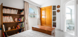 De gastenslaapkamer is net zo licht en ruim, met een eigen ensuite badkamer die gasten rust biedt.